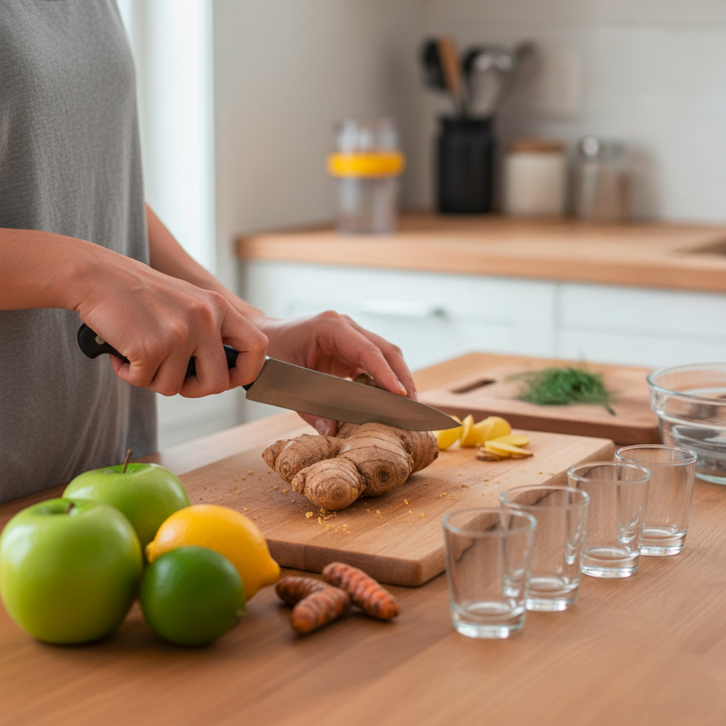 Tipp: Achte schon beim Kauf auf frischen Ingwer, denn nur so erhältst du genügend Saft für einen effektiven Shot. Für mehr Infos schaue auf unsere Tipps & Tricks.